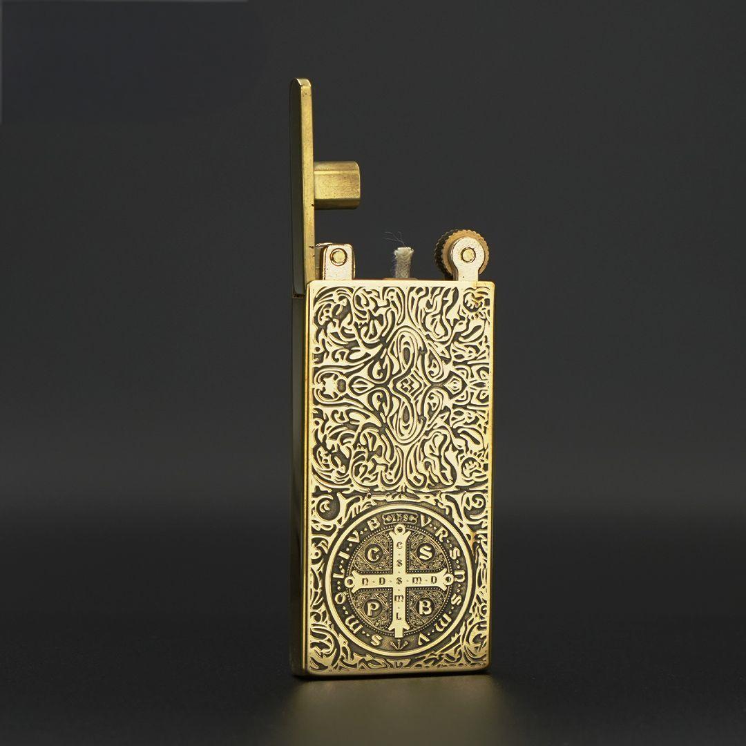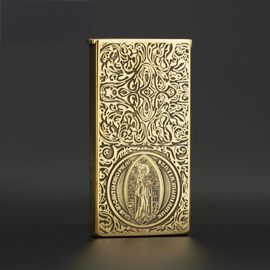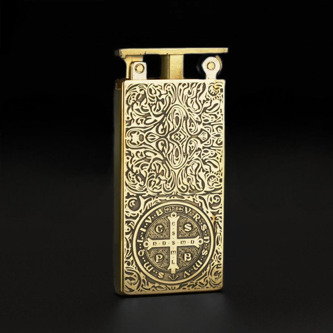 The Lifting Mechanism Constantine Brass Lighter combines a lifting mechanism for smooth ignition with the elegant look of brass construction. This oil-based lighter is slimmer and more compact than typical models, offering great portability. The design features a replica of the Constantine symbol, inspired by the iconic imagery from the Constantine TV series. A unique blend of craftsmanship and pop culture, this lighter is perfect for collectors and fans alike.