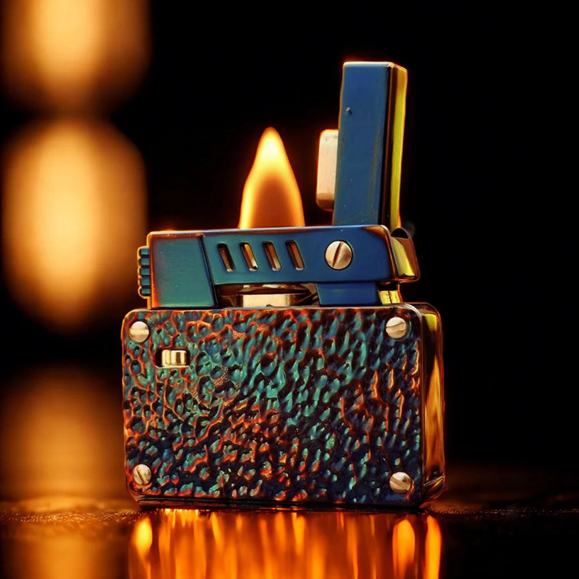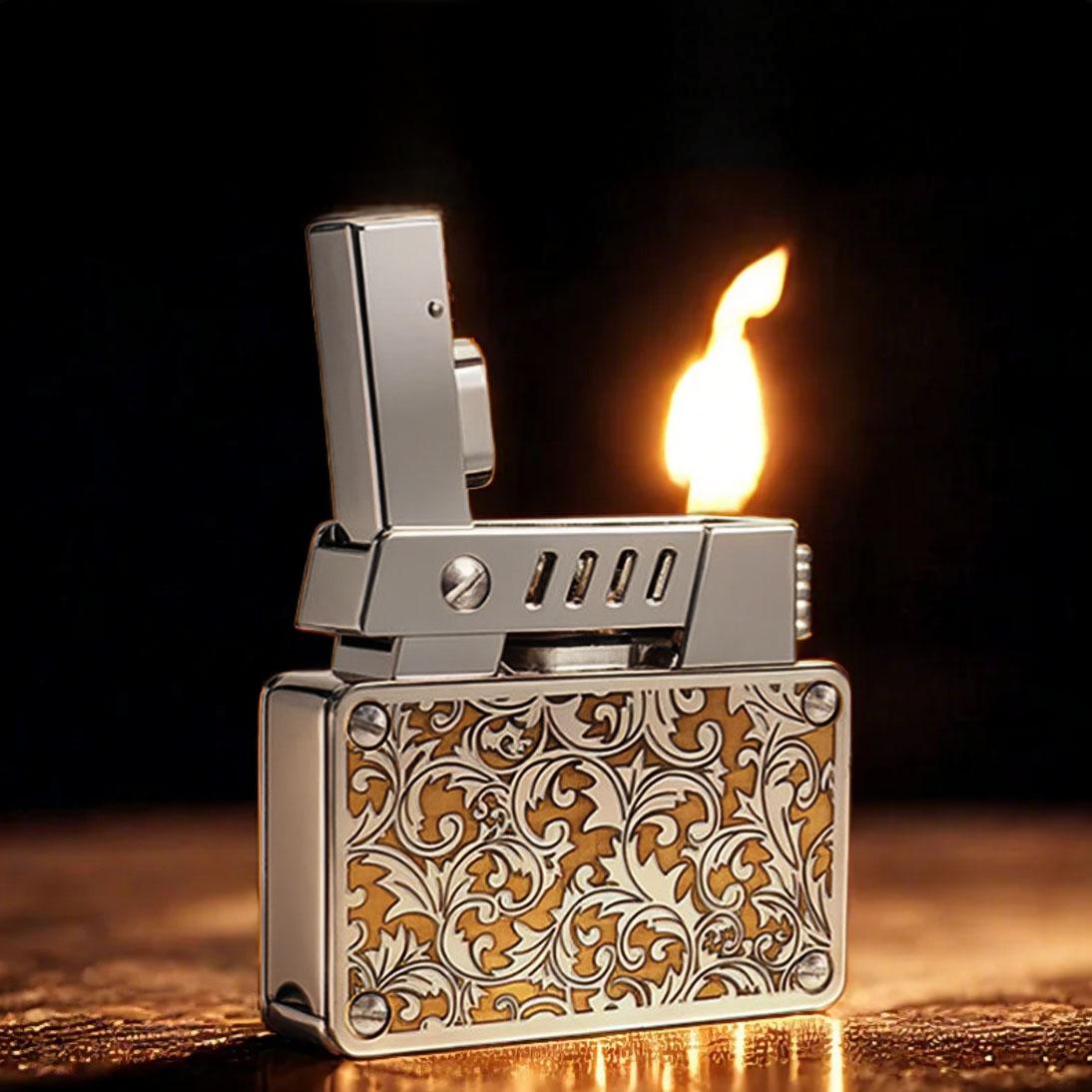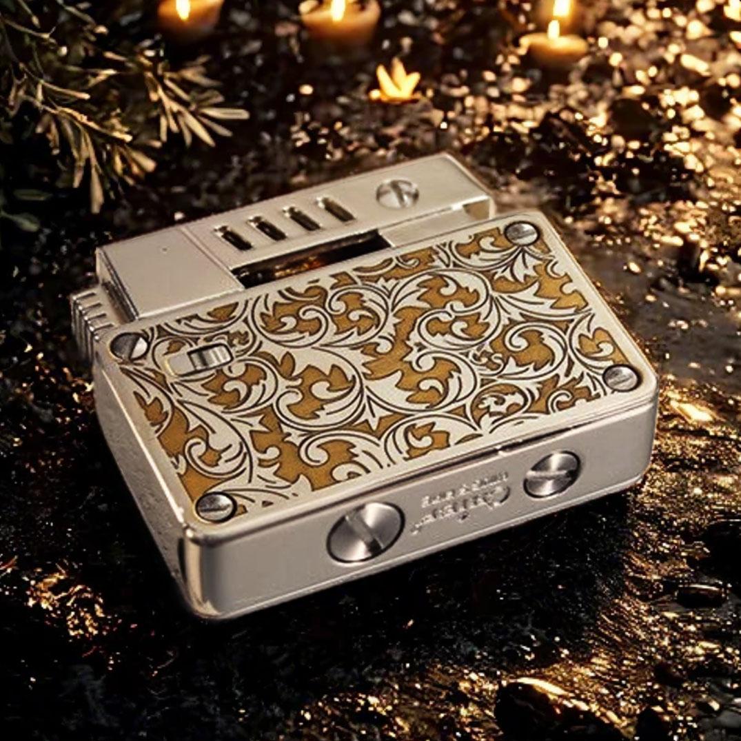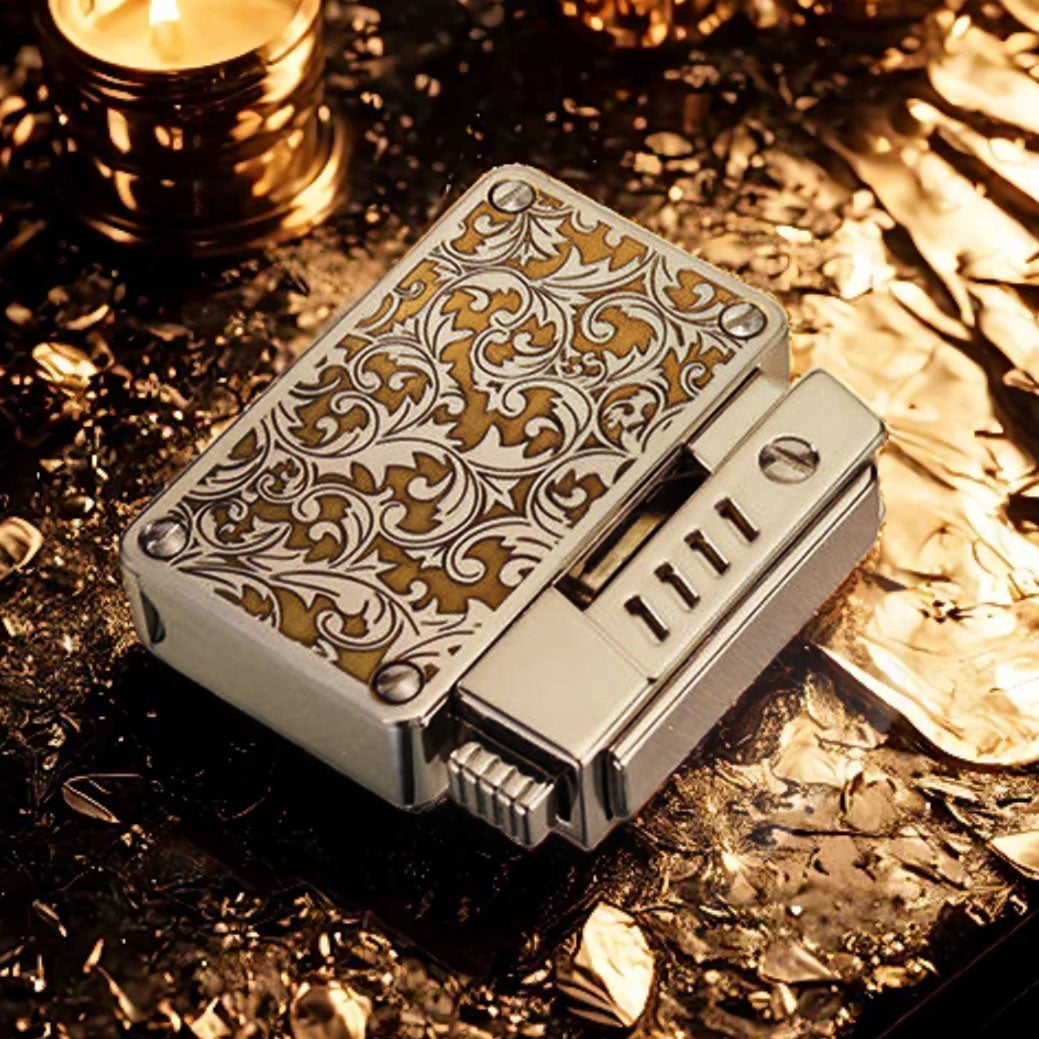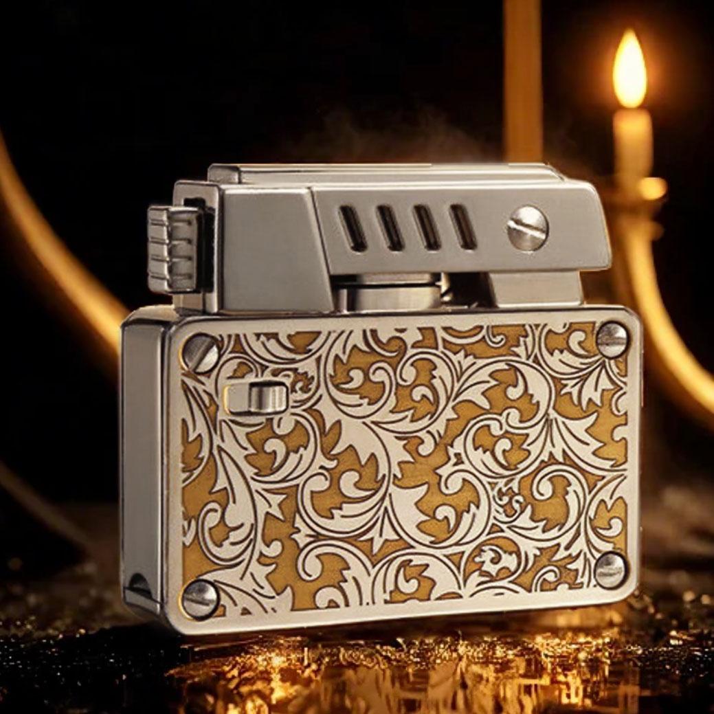 Where vintage utility meets modern craftsmanship, this elegantly structured kerosene lighter offers two bold finishes that cater to distinct personalities. Choose between the baroque elegance of the silver floral scrollwork or the rugged mystique of a meteorite crater texture. Both finishes are engineered onto a robust, rectangular body with a refined exterior and a reliable mechanical heart.
